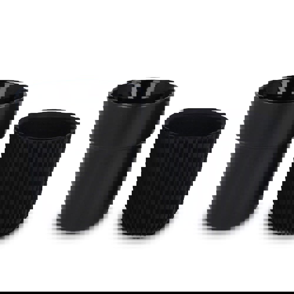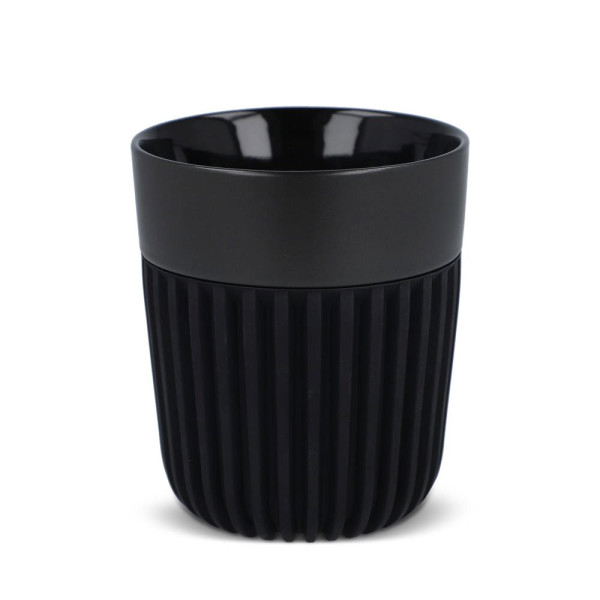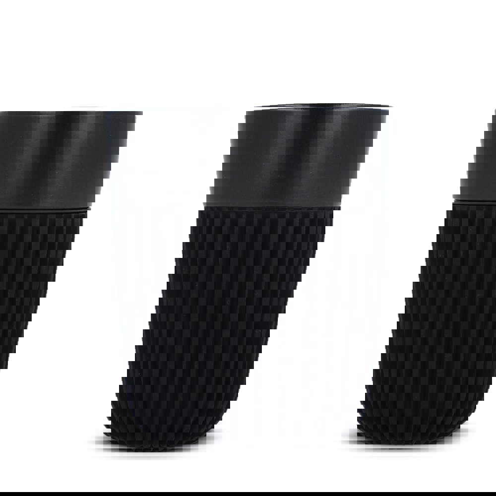 The InSideOut All Black Premium Mug Fjord is crafted from New Bone China and features an exclusive ribbed silicone sleeve that insulates and protects. Designed by Andy Cartwright, this beautifully crafted mug radiates elegance and luxury. The Fjord is sized to fit most coffee makers and is dishwasher safe, making it ideal for everyday use.