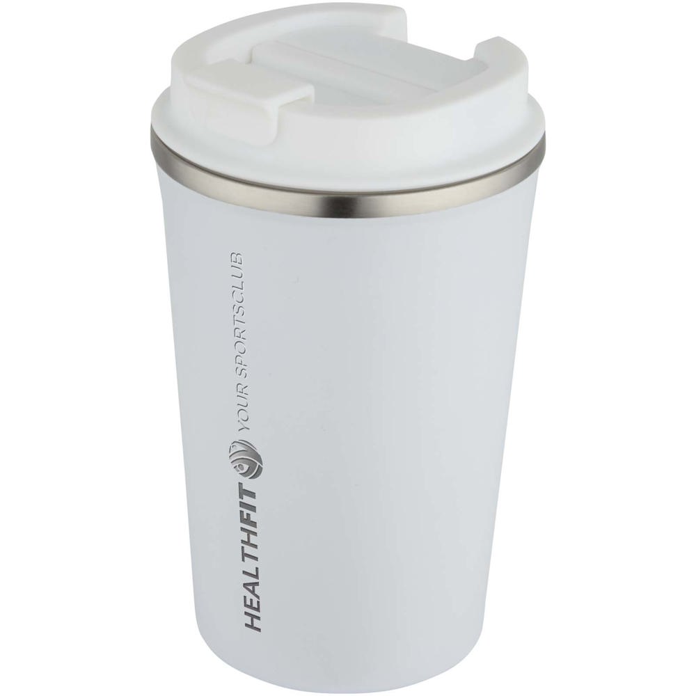 Designed for drinks on the go, this double-wall, vacuum-insulated stainless steel coffee tumbler keeps beverages at the right temperature for longer. A twist-on lid allows smooth opening and closing while making the drink easy to enjoy, and the matte coating adds a sleek finish. Leakproof. Volume capacity: 350 ml.