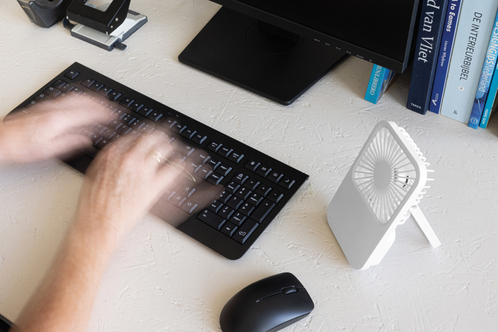 Aervina RCS recycled plastic re-chargeable desk fan