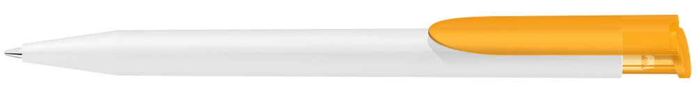 Retractable ballpoint pen with opaque matt housing in white and coloured transparent frosted clip... more