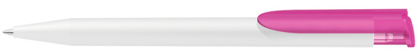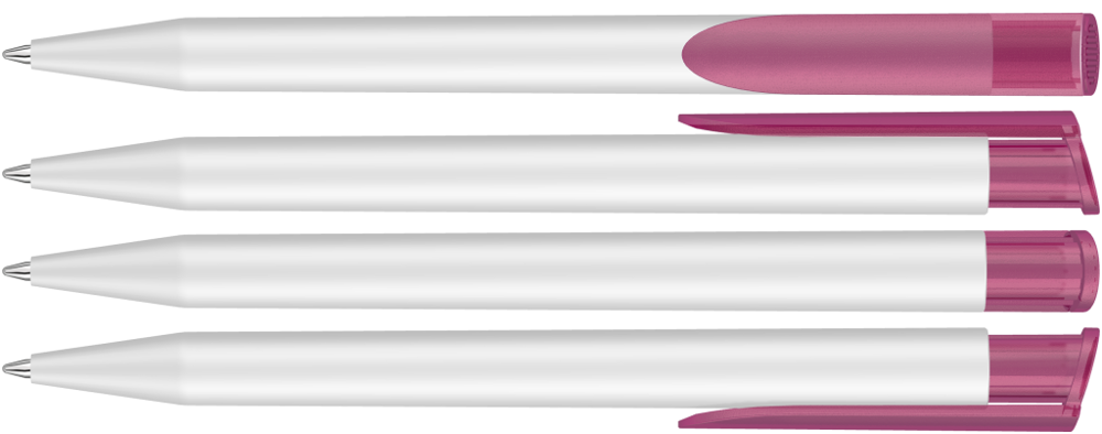 Retractable ballpoint pen with opaque matt housing in white and coloured transparent frosted clip... more