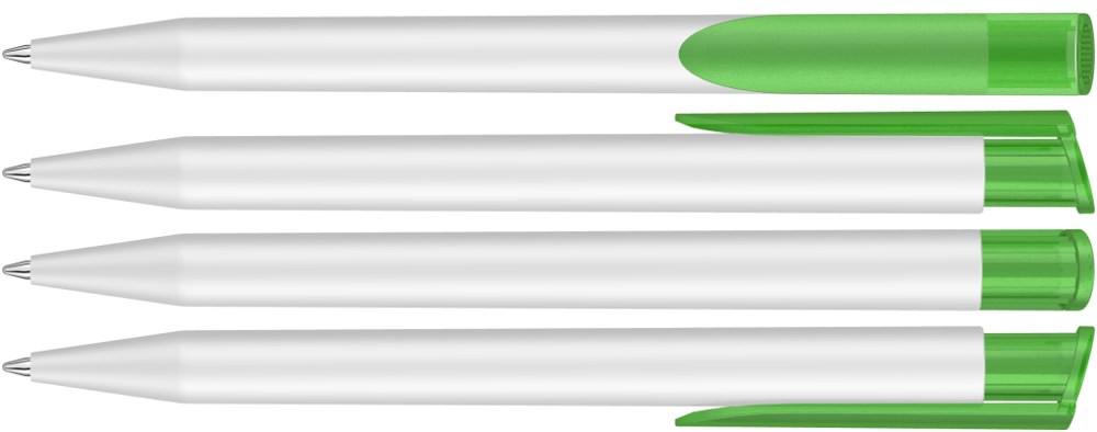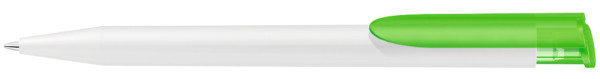 Retractable ballpoint pen with opaque matt housing in white and coloured transparent frosted clip... more