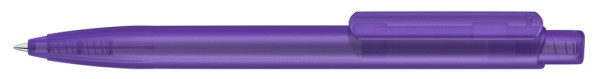 Retractable ballpoint pen with transparent frosted housing, clip and push-button made from recycled ABS plastic. Integrated grip zone.