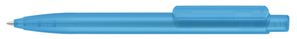 Retractable ballpoint pen with transparent frosted housing, clip and push-button made from recycled ABS plastic. Integrated grip zone.