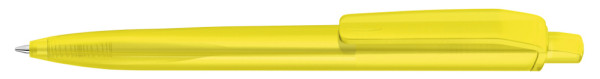 Retractable ballpoint pen with transparent frosted housing, clip and push-button made from recycled ABS plastic. Ergonomically shaped grip zone.