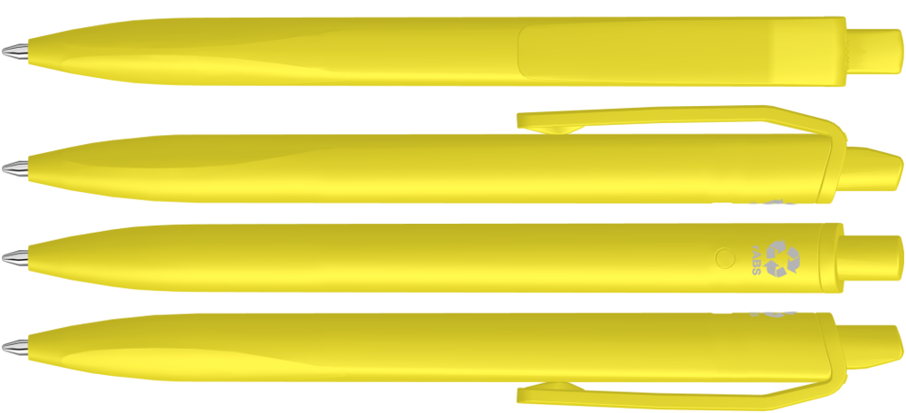 Retractable ballpoint pen with opaque matt housing, clip and push-button made from recycled ABS plastic. Ergonomically shaped grip zone.