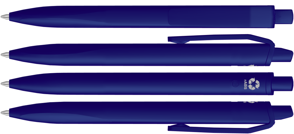 Retractable ballpoint pen with opaque matt housing, clip and push-button made from recycled ABS plastic. Ergonomically shaped grip zone.
