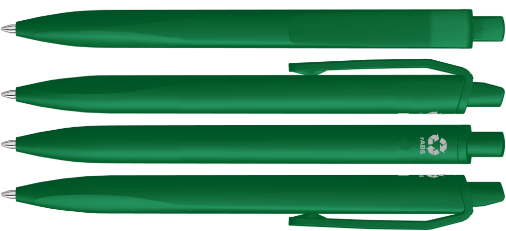 Retractable ballpoint pen with opaque matt housing, clip and push-button made from recycled ABS plastic. Ergonomically shaped grip zone.