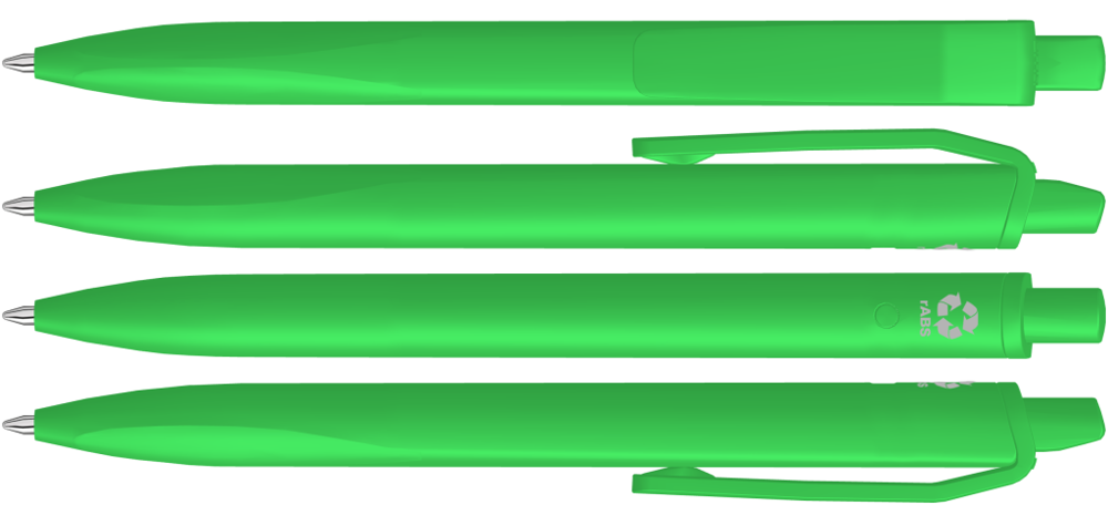Retractable ballpoint pen with opaque matt housing, clip and push-button made from recycled ABS plastic. Ergonomically shaped grip zone.
