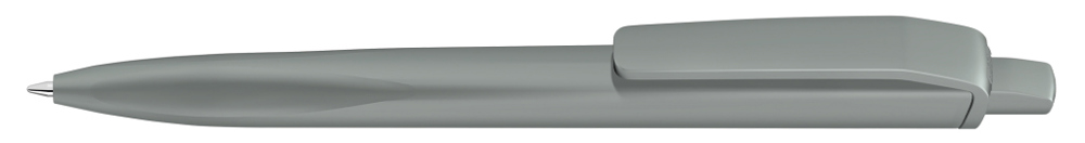 Retractable ballpoint pen with opaque matt housing, clip and push-button made from recycled ABS plastic. Ergonomically shaped grip zone.