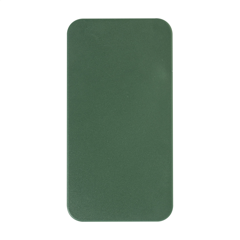 Recycled ABS power bank with built-in solar charger and 4000 mAh battery. With 1 USB and 1 USB-C charger ports. USB-C input port. Including USB charger cable.