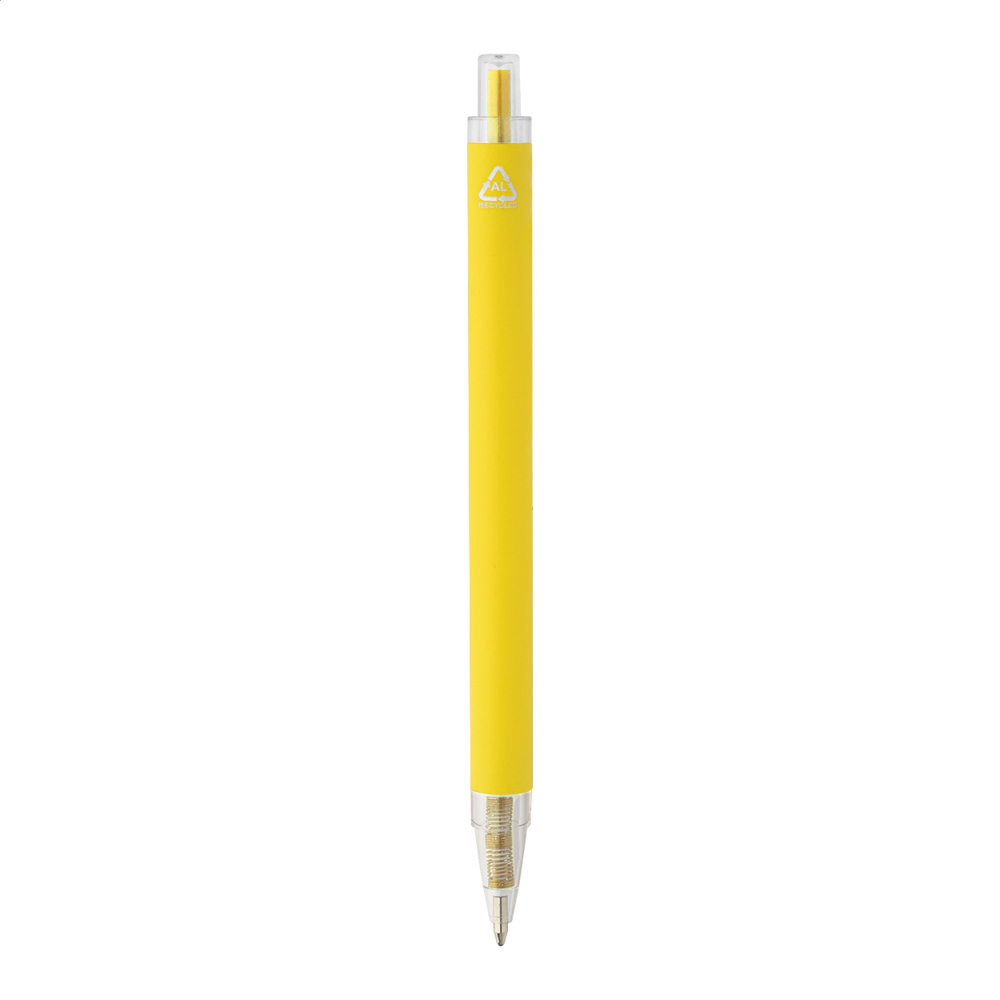 Recycled aluminium ballpoint with matte finish body and transparent RPET parts. With blue refill.