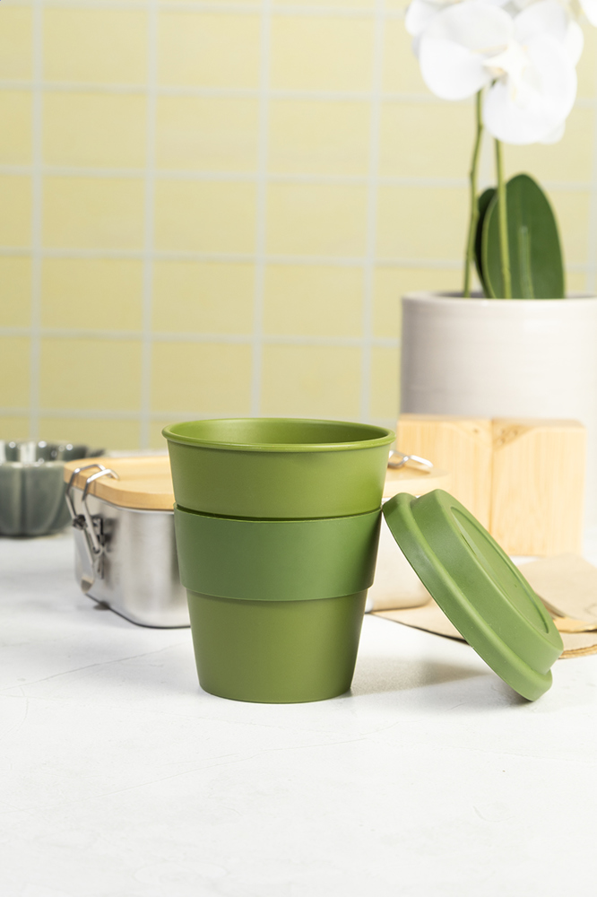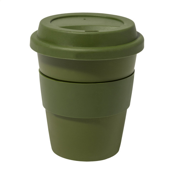 Single-wall, PP plastic travel cup with TPE drinking lid and grip. 350 ml. more