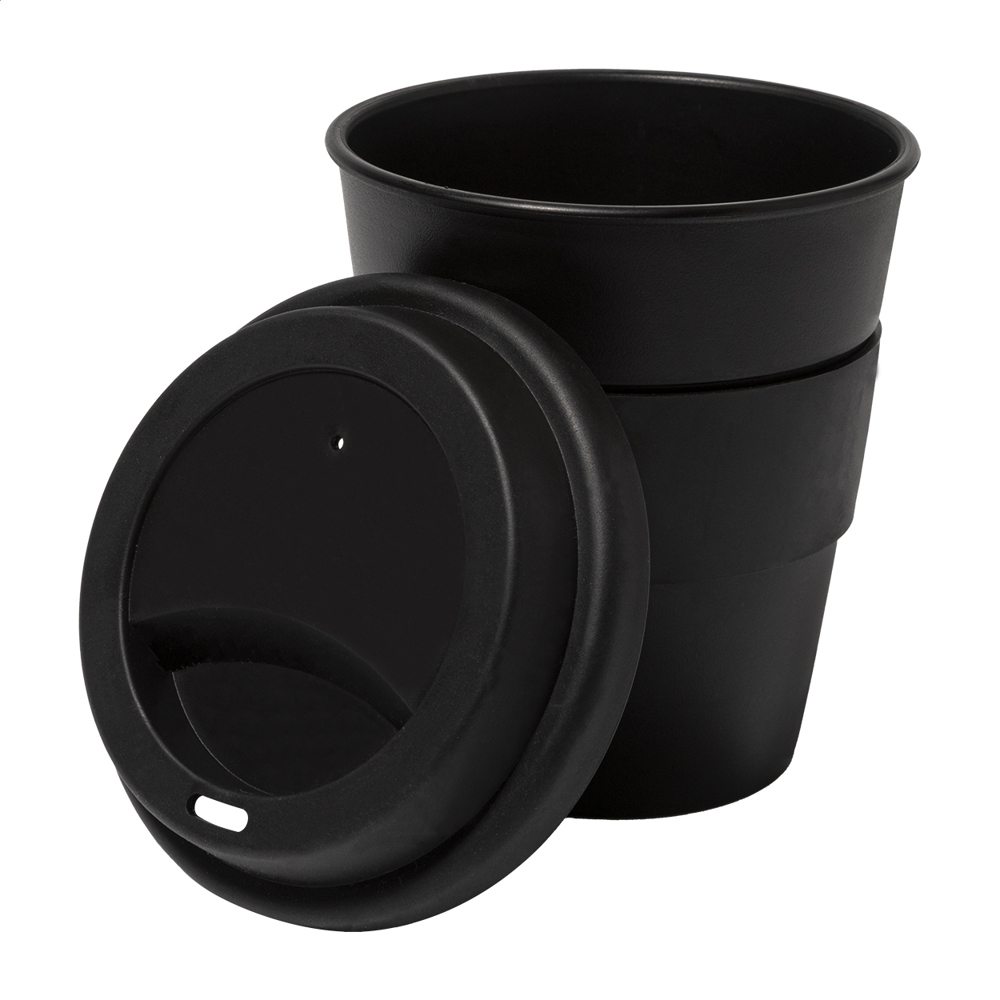 Single-wall, PP plastic travel cup with TPE drinking lid and grip. 350 ml. more