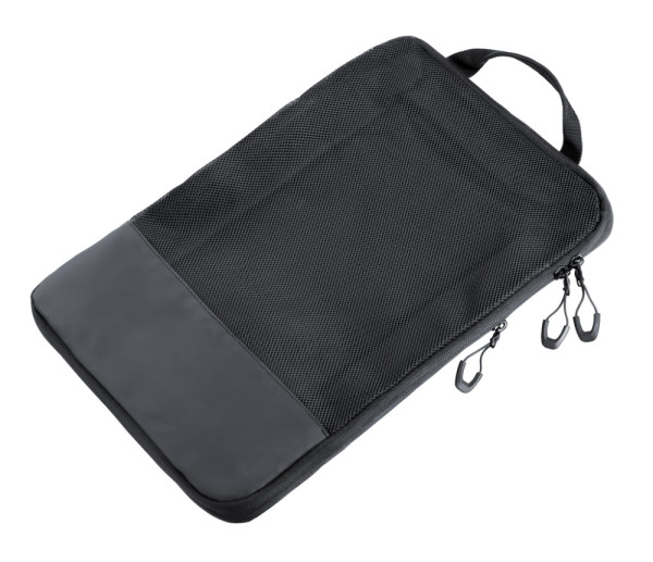 Travel compression packing cube, large packing bag (size L) with zip and additional compression zip, for space-saving, organised and crease-free packing of shirts, trousers, etc. in suitcases and backpacks, with mesh window and carrying handle, Tarpaulin: 80% polyester, 20% polyurethane (PU), polyester, polyurethane, tarpaulin (tarp), black