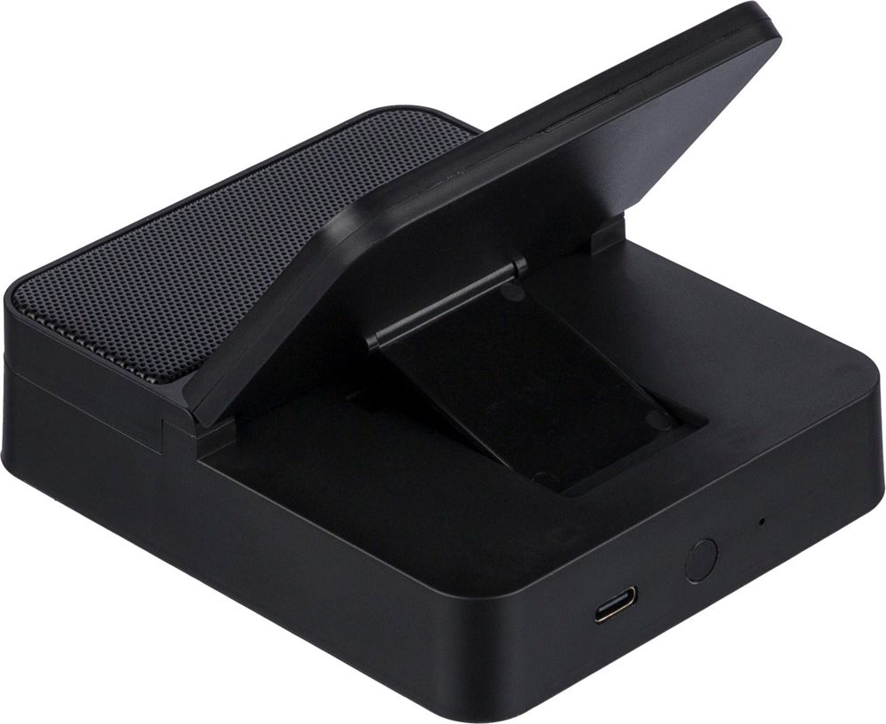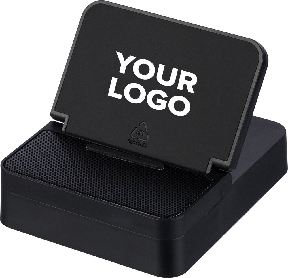 Recycled ABS 3-in-1 wireless charger, speaker, and phone holder in a cube-shaped design. Features... more