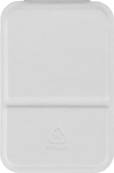 Mirror with folding recycled PU cover, designed to stand upright when opened. Pocket-sized at 70 x 11 cm, available in black, white, and red. Includes an embossed recycled logo. Packed in a paper bag.