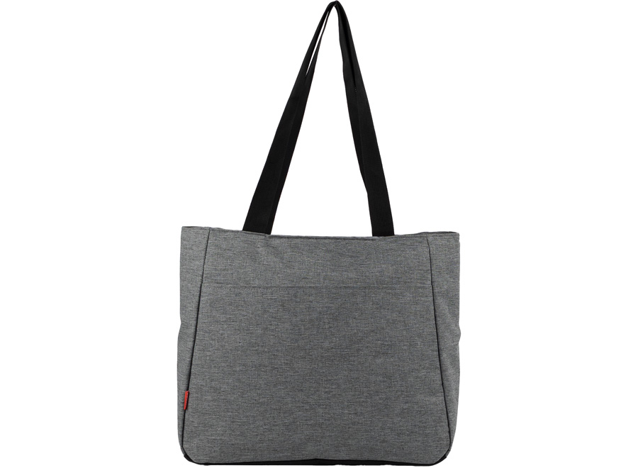 Insulated bag in heather grey wulong RPET fabric. Suitable for all our bento models. Additional Outer pocket. Reinforced handles. 5mm thick insulation. Zipped closure. Capacity: 20 L.