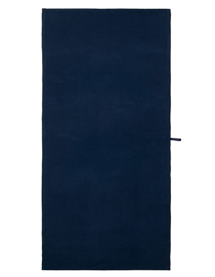 Quickdry towel with self fabric storage bag. (Bath and Beach Towels only) | Suitable for print and embroidery | Turned and stitched edges on all sides | Woven, peached fabric with no pile | Self fabric hanging loop on rear face | High absorbency | Peached finish