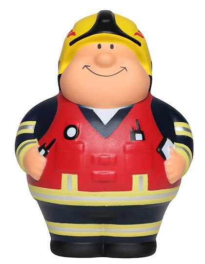 Anti-stress ball in human form with a round belly and guaranteed smile | Simply squeeze to relieve stress | The material allows the product to return to its original shape | Design protection throughout the EU Colour variants symbolise the area of responsibility: Yellow – Incident Commander, Red – Platoon Leader, Blue – Group Leader, Dark Blue – the modern variant: Feuer Bert® 2.0, Green – Press Officer | Warning: Not a toy! Keep away from children under 3 years of age. May contain small parts that can be detached.