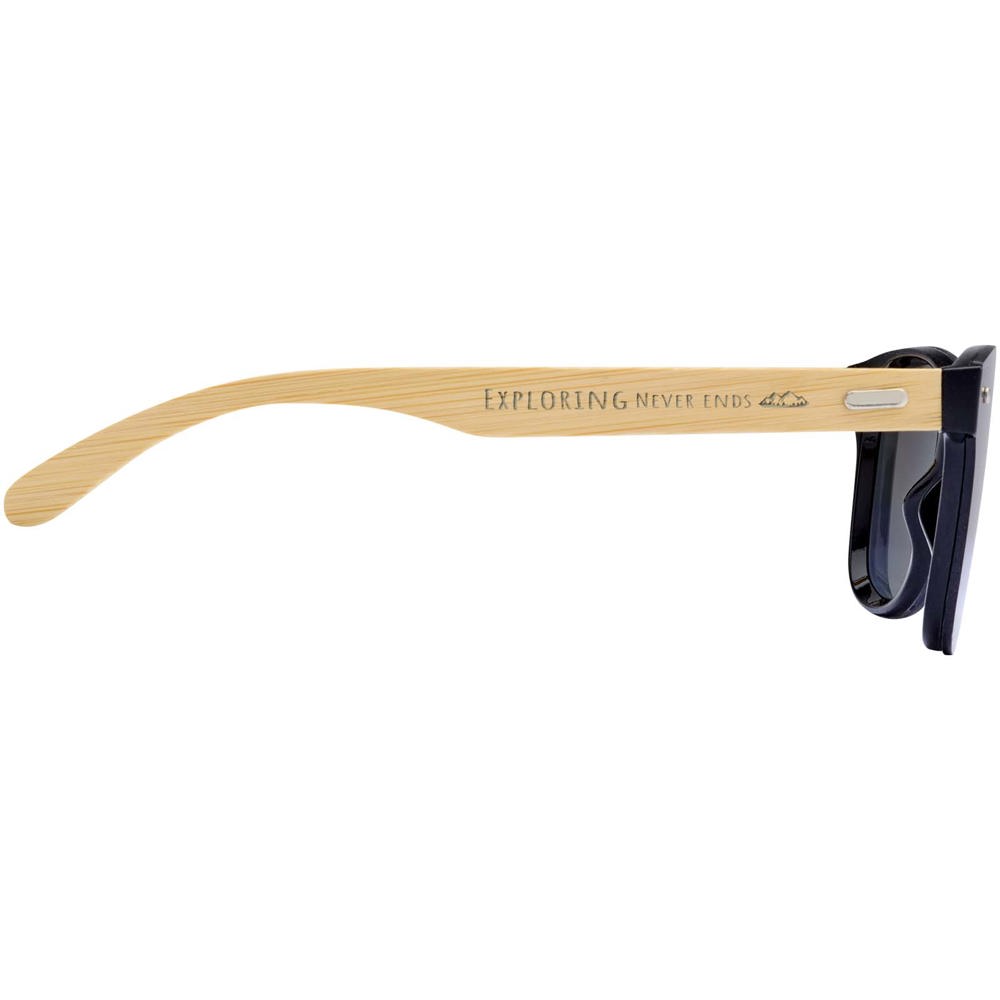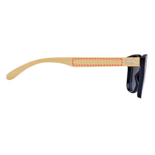 Stylish sunglasses with coloured lenses and bamboo temples. The UV 400 lenses provides protection from harmful ultraviolet light rays. Compliant with EU safety standard EN12312-1.