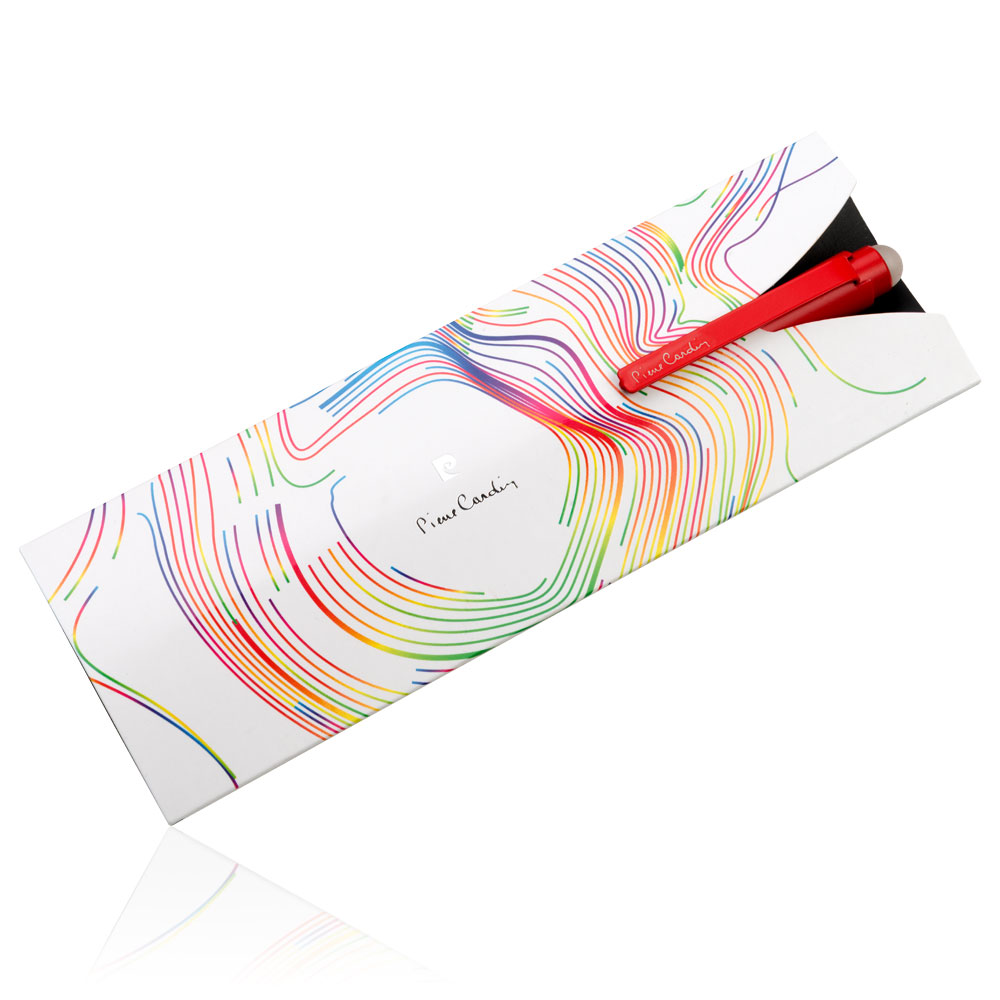 Ein eleganter, löschbarer Metallkugelschreiber von Pierre Cardin. Er wird in vier modernen Farben angeboten. Der Stift enthält eine schwarze Mine, die mit einem speziellen Radierer an der Spitze des Stiftes gelöscht werden kann. Verpackt in einer Pierre Cardin Box, versendet mit Echtheitszertifikat. Empfohlene Veredelungstechnik: Lasergravur L1 Maximale Druckgröße: 40 × 5 mm Abmessungen: Kugelschreiber 1,1 × 14,3 cm, Verpackung 18,5 × 3,1 × 7,5 cm