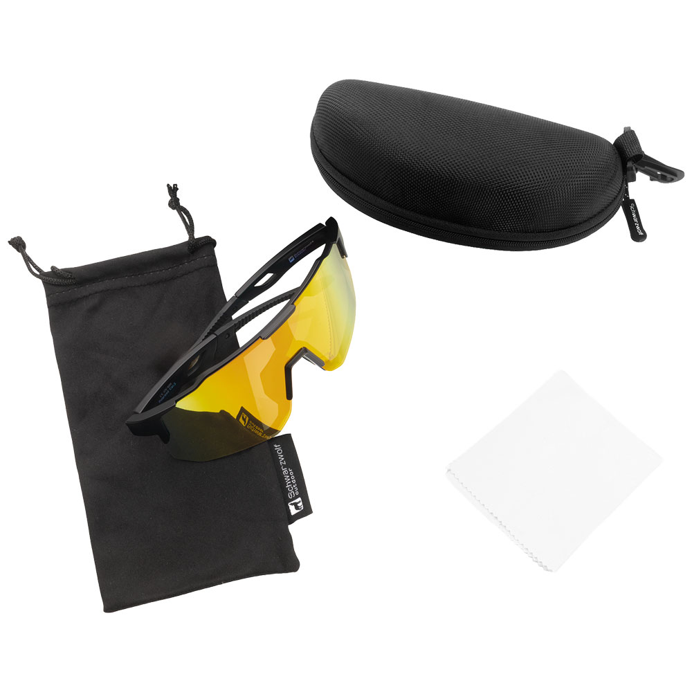 Polarisierte Schwarzwolf outdoor Sportsonnenbrille mit farbigen Gläsern. Das Brillengestell ist schwarz und bietet UV-400-Schutz. Diese Sportbrille mit polarisierten Gläsern reduziert störende Blendungen und verbessert die Detailwahrnehmung im Freien. Das Ergebnis: weniger Augenbelastung und natürlichere Farbwahrnehmung selbst bei starker Sonneneinstrahlung. Ideal zum Laufen, Radfahren, für Wassersportarten und den täglichen Gebrauch. Lieferumfang: Schwarze Mikrofaser-Tasche und praktische harte schwarze Aufbewahrungsbox mit Reißverschluss, inklusive weißem Mikrofasertuch, das für Sublimationsdruck geeignet ist. Verpackt in einer Schwarzwolf outdoor Geschenkbox. Empfohlene Veredelungstechnik: Tampondruck T3, Siebdruck S3 einfarbig, Magicprint, Sublimation Maximale Druckgrößen: Brillenbügel: 30 × 7 mm Etui: 50 × 15 mm Mikrofaserbeutel: 70 × 100 mm Reinigungstuch: 180 × 180 mm Abmessungen: Mikrofaserbeutel: 9,1 × 17,6 cm Etui: 17,5 × 7,5 × 6,5 cm Reinigungstuch: 18 × 18 cm