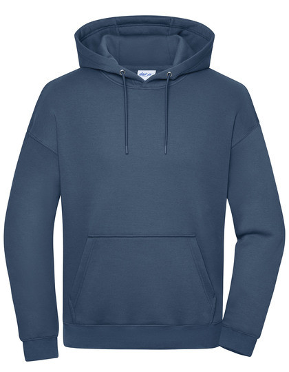 High-quality sweatshirt fabric with brushed inside | Material blend of combed, ring-spun organic cotton and recycled polyester | Double-layered hood with drawstring | Kangaroo pocket | Elastane waistband and cuffs