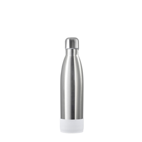 Perfect for hot or cold drinks, our double-walled stainless steel bottle impresses with its trendy and functional design. Its double-walled design with vacuum ensures that drinks stay hot or cold for longer. The drinking bottle can be ordered in an elegant black or white matte powder finish or, of course, in sleek silver. Available with a 500 ml capacity. Display your logo in style on this on-trend, premium-quality drinks bottle.