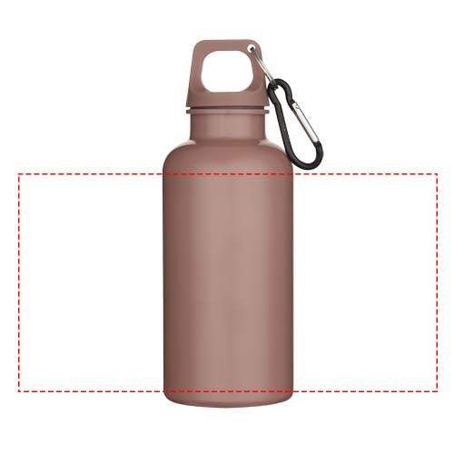 Staying hydrated at all times is possible with this durable yet lightweight 400 ml water bottle made from RCS certified recycled PET. It is the perfect companion while exercising, on day trips or at the office. The single-walled Oregon bottle has a twist-on lid and offers plenty of space to add any kind of logo. Clip the attached carabiner (not suitable for climbing) securely to a bag to avoid losing it. Manufactured in compliance with the EFSA approved PET recycling process.