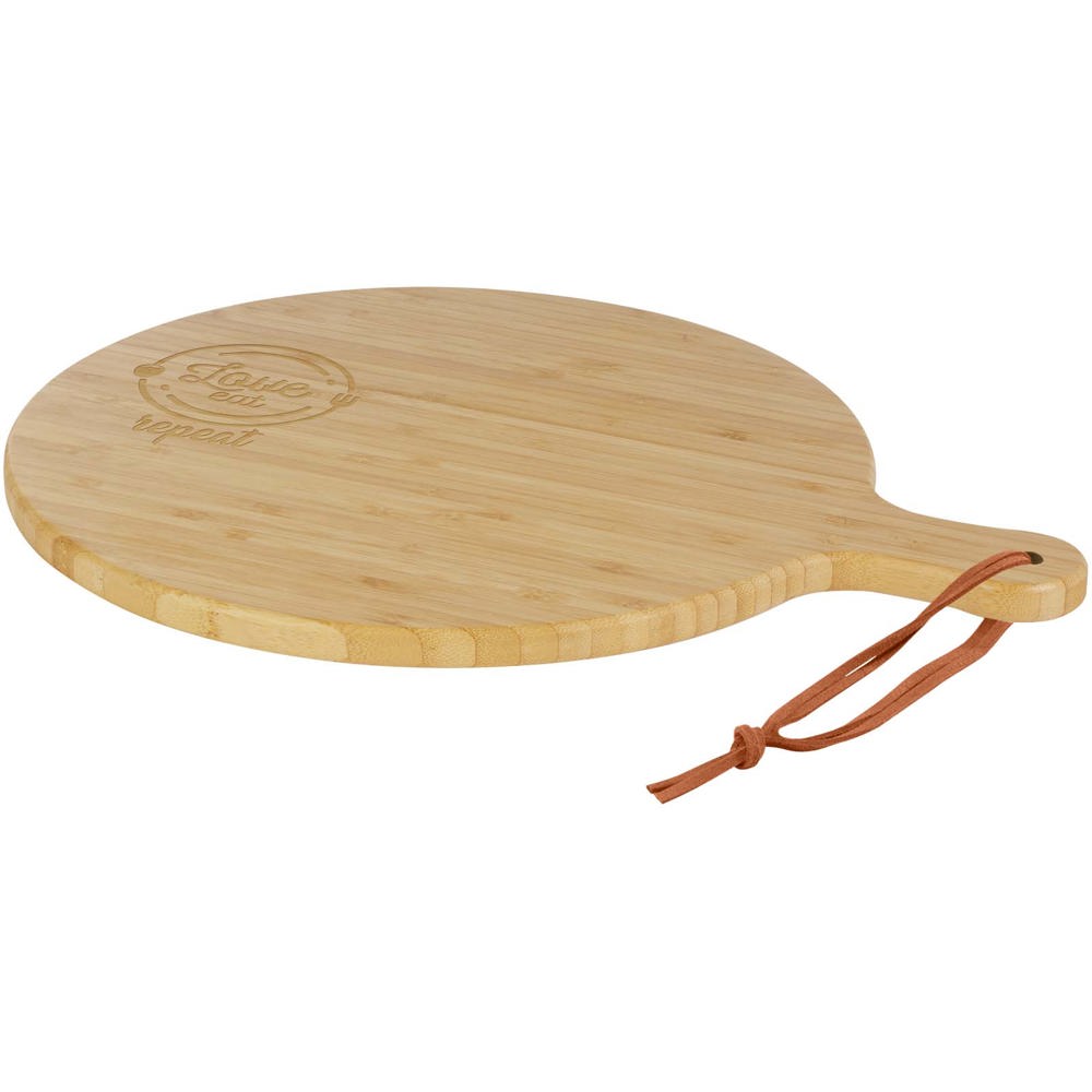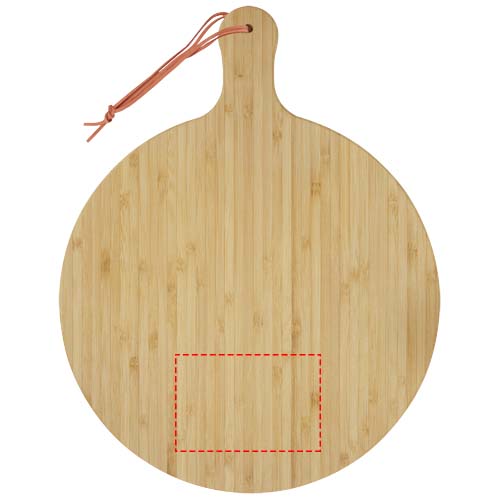 The Delys cutting board is made from bamboo, ideal for individuals and businesses who opt for a more sustainable choice. Board diameter: 30.5 cm. Handle length: 8 cm. Board thickness: 1.4 cm. Not suitable for microwave or dishwasher.
