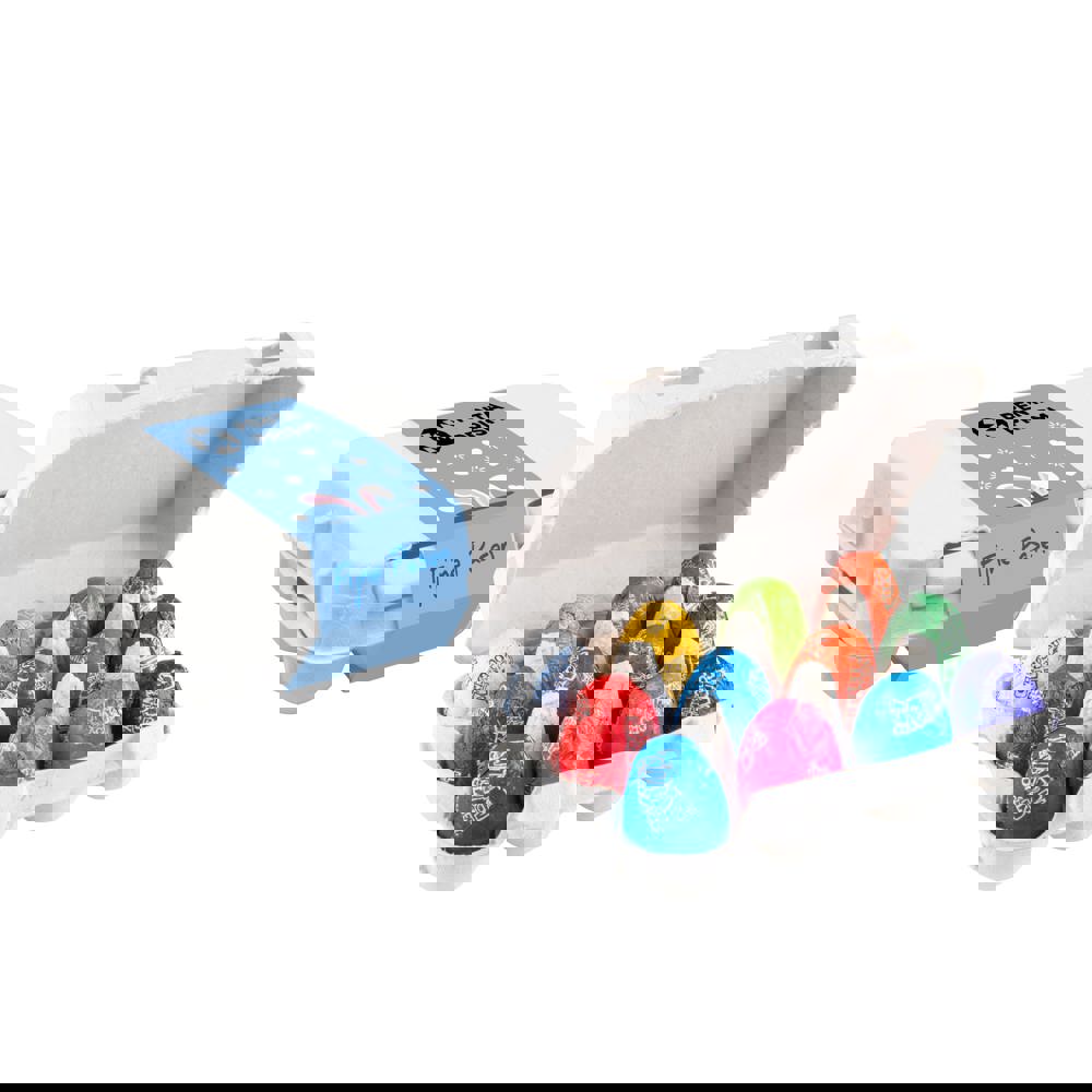 Egg carton with full color printed wrapper filled with 12 Tony Chocolonely Easter eggs in... more