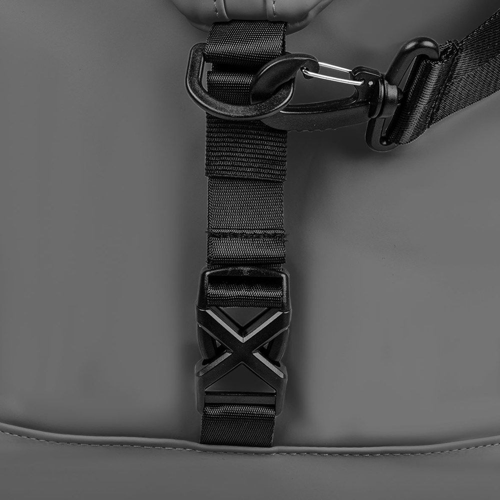 Discover our stylish travel bag with a generous volume of approximately 50 liters. The two-way zip main compartment allows for quick access to your belongings, while two inner pockets and an additional front pocket ensure secure storage. A reflective stripe provides added safety and visibility. The adjustable and removable padded shoulder strap guarantees optimal comfort. Perfect for any adventure!