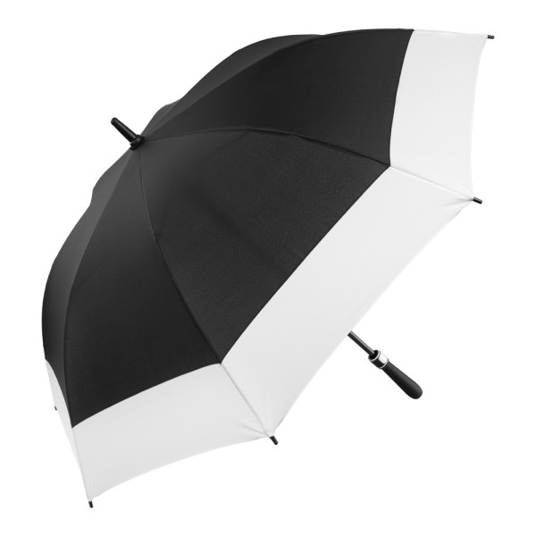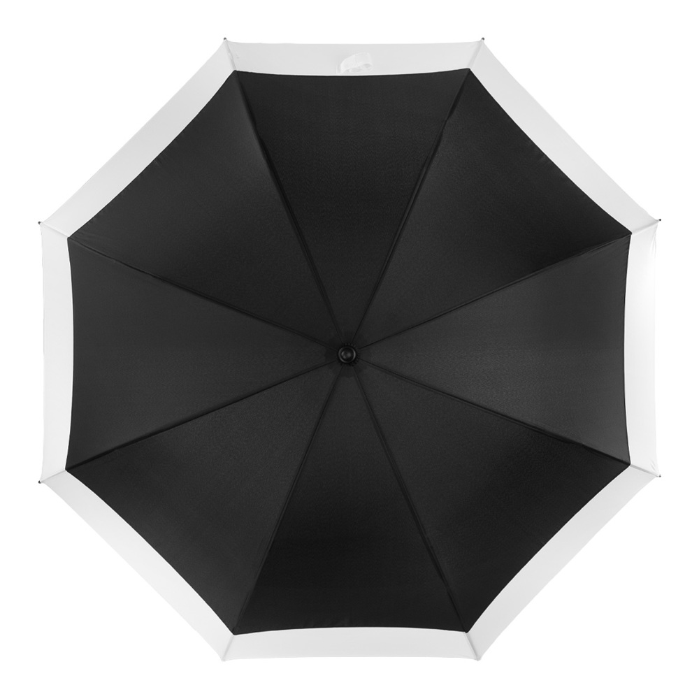 Elegance Meets Performance – The New Guest Umbrella with Style and Strength This premium guest umbrella combines timeless design with smart functionality, making it the perfect companion for hotels, businesses, or upscale events. Measuring approx. 95.5 cm when closed, it features a convenient automatic open function for quick deployment in sudden rain. Thanks to its windproof system and 60 cm black fiberglass ribs, the umbrella stands up to strong winds with ease, while the sturdy 14 mm black metal shaft ensures long-lasting durability. The straight PU-coated handle offers a comfortable grip and comes with color accents matching the canopy – a subtle yet stylish touch. Personal branding is also possible thanks to the customizable doming option in the handle. Additional features: 8-panel canopy for balanced coverage, Plastic tips and a rubberized tip for added stability and a refined look, Functional, elegant, and built to last – an umbrella that leaves a lasting impression.
