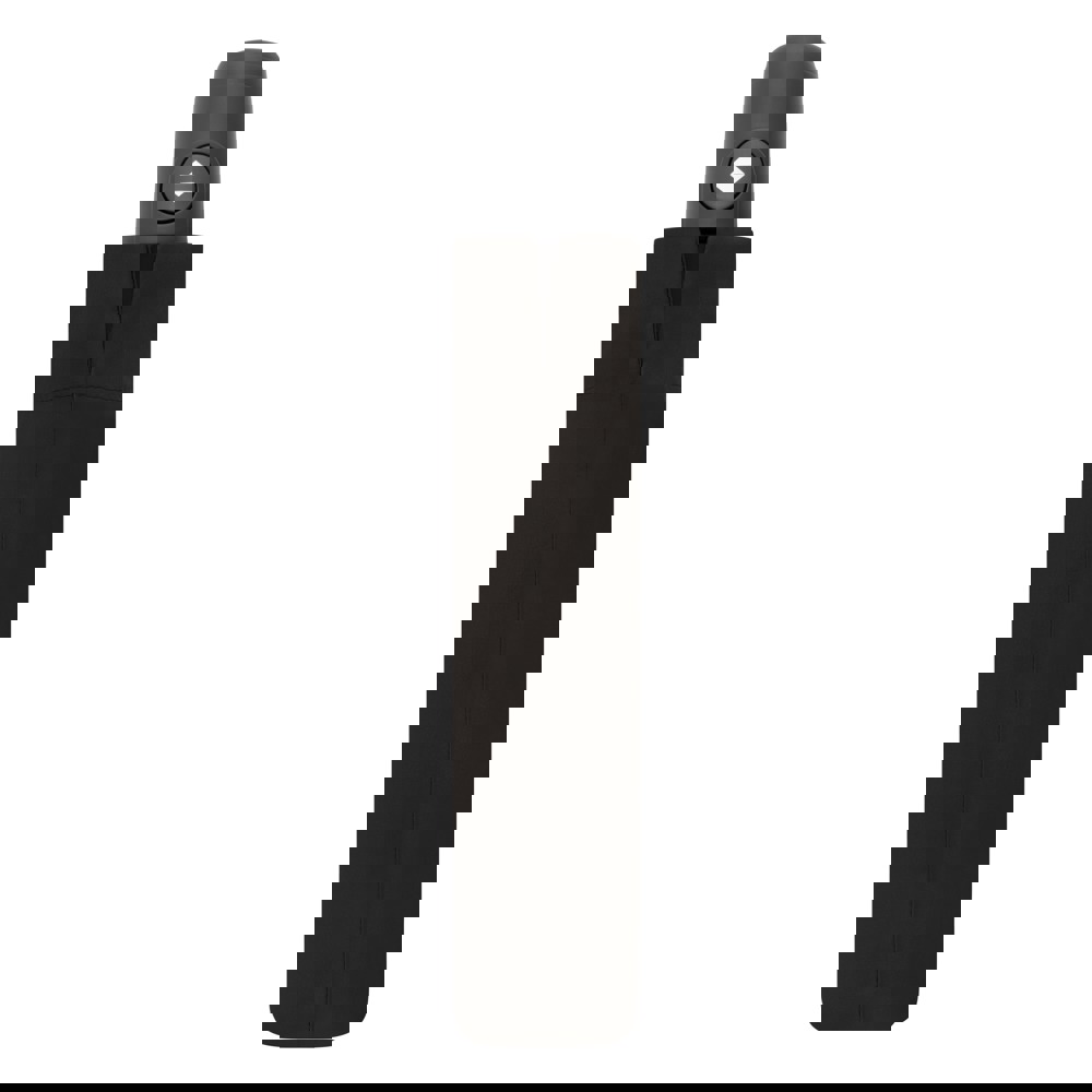 Polyester Pongee, schwarzer Stahlstock, Fiberglas-Teilschienen, mattschwarzer Kunststoffgriff mit integrierter Drucktaste