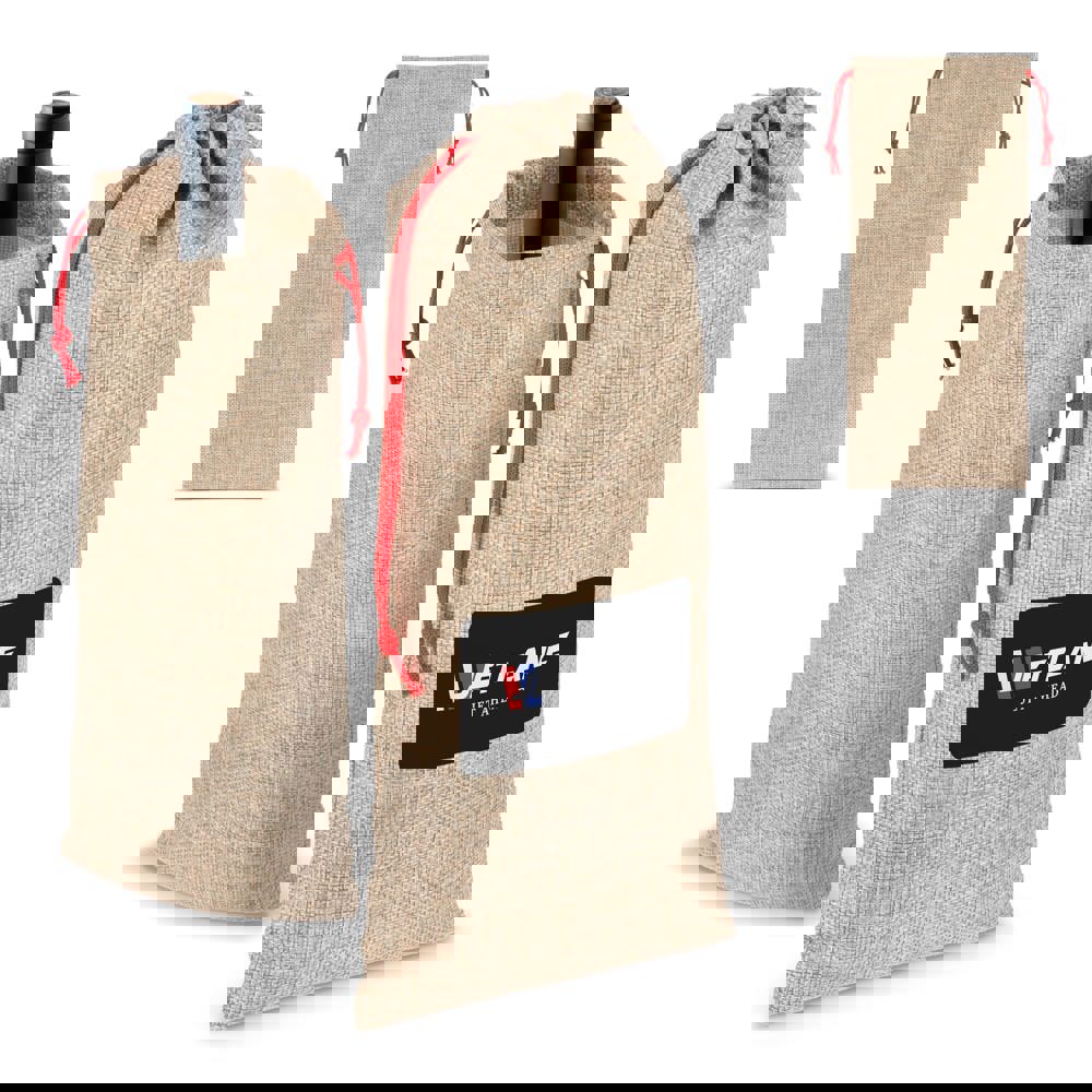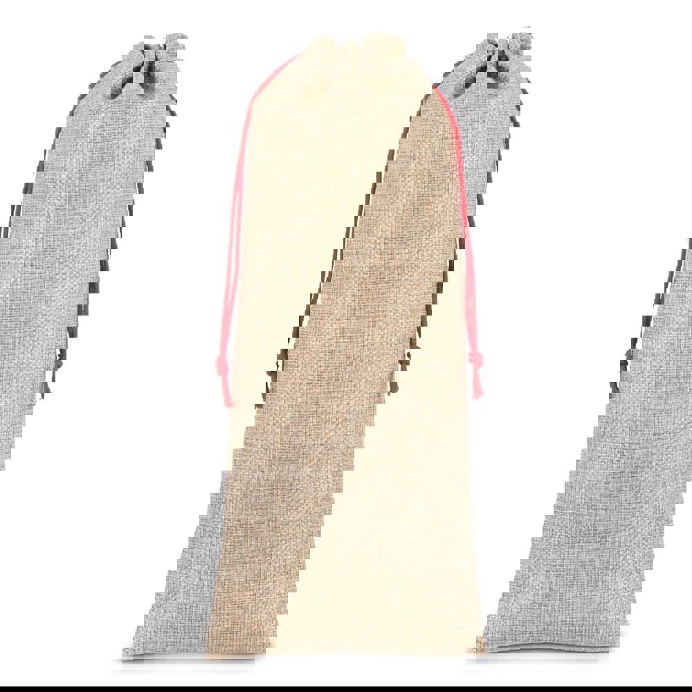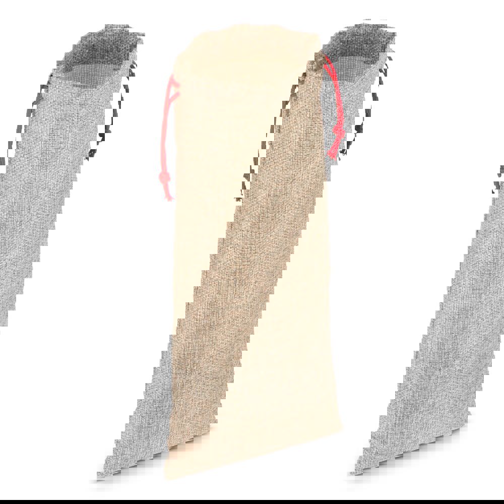 Present your favorite bottle in style with this elegant jute-style bottle pouch. Durable and reusable, it’s the perfect way to gift bottles of wine or liquor while adding a touch of rustic charm.