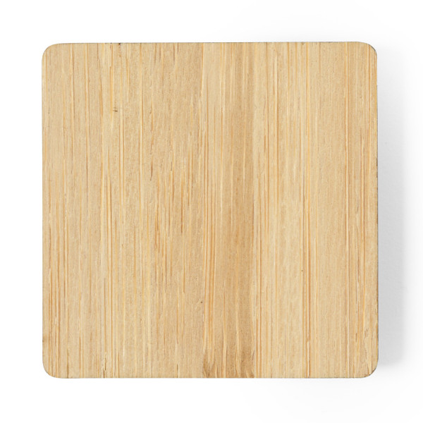 Nature line pin, made of bamboo from natural cuttings. Made in Europe and available in circular and square designs, with magnetic pin.