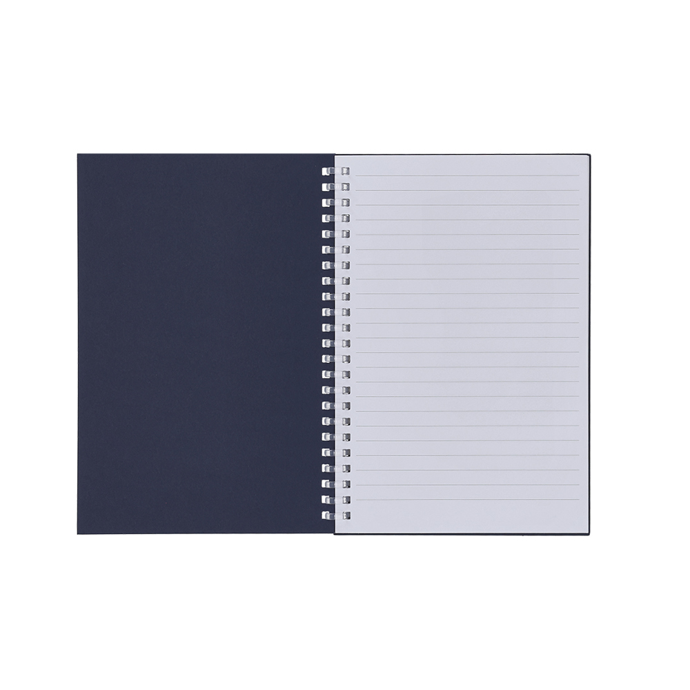 Transparent ring notebook A5 with hard covers in resistant recycled cardboard. Interior with 80 white sheets with a stripe arrangement and 100% recycled. Recycled Cardboard comes from the reuse of surplus manufacturing and recycling paper at the end of its useful life, becoming an ecological and sustainable canvas.