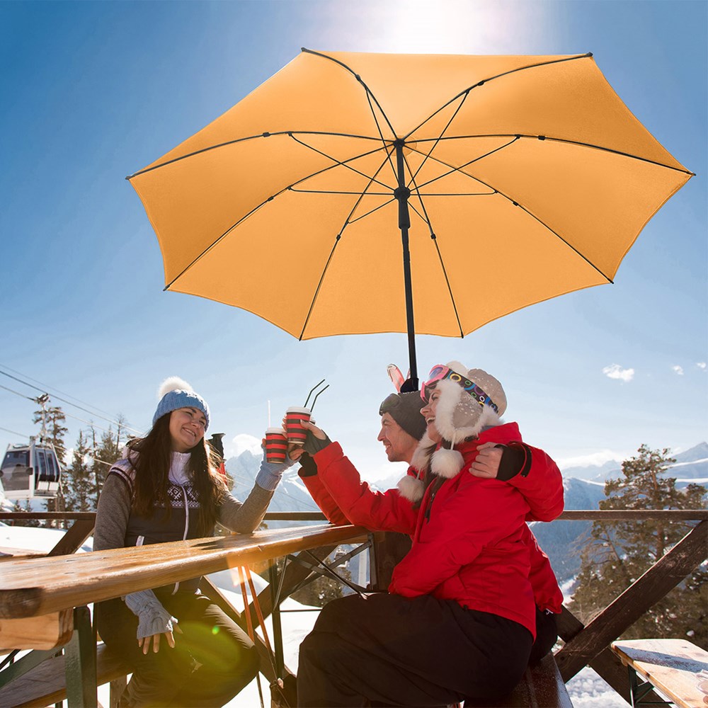 Modern parasol with frame in a titanium finish and tilt mechanism Simple handling with safety runner, very solid fibreglass ribs, two-piece and progressively height-adjustable shaft with with tilt mechanism to angle the umbrella, shaft in an elegant titanium finish, lower shaft approx. 120 cm long and twist lock to fix securely, convenient carrying case, high-quality cover with a grammage of approx. 200 g/m² and UPF 50+ sun protection factor, excluding parasol base (Art. 8920 or Art. 8905) / ground spike (Art. 8939)