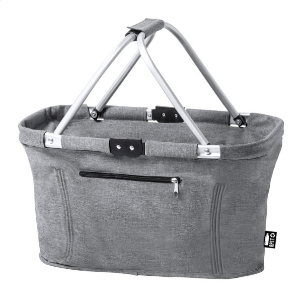 Foldable picnic basket in 600D RPET polyester, with aluminium frame and zipped front pocket. With distinctive RPET label.