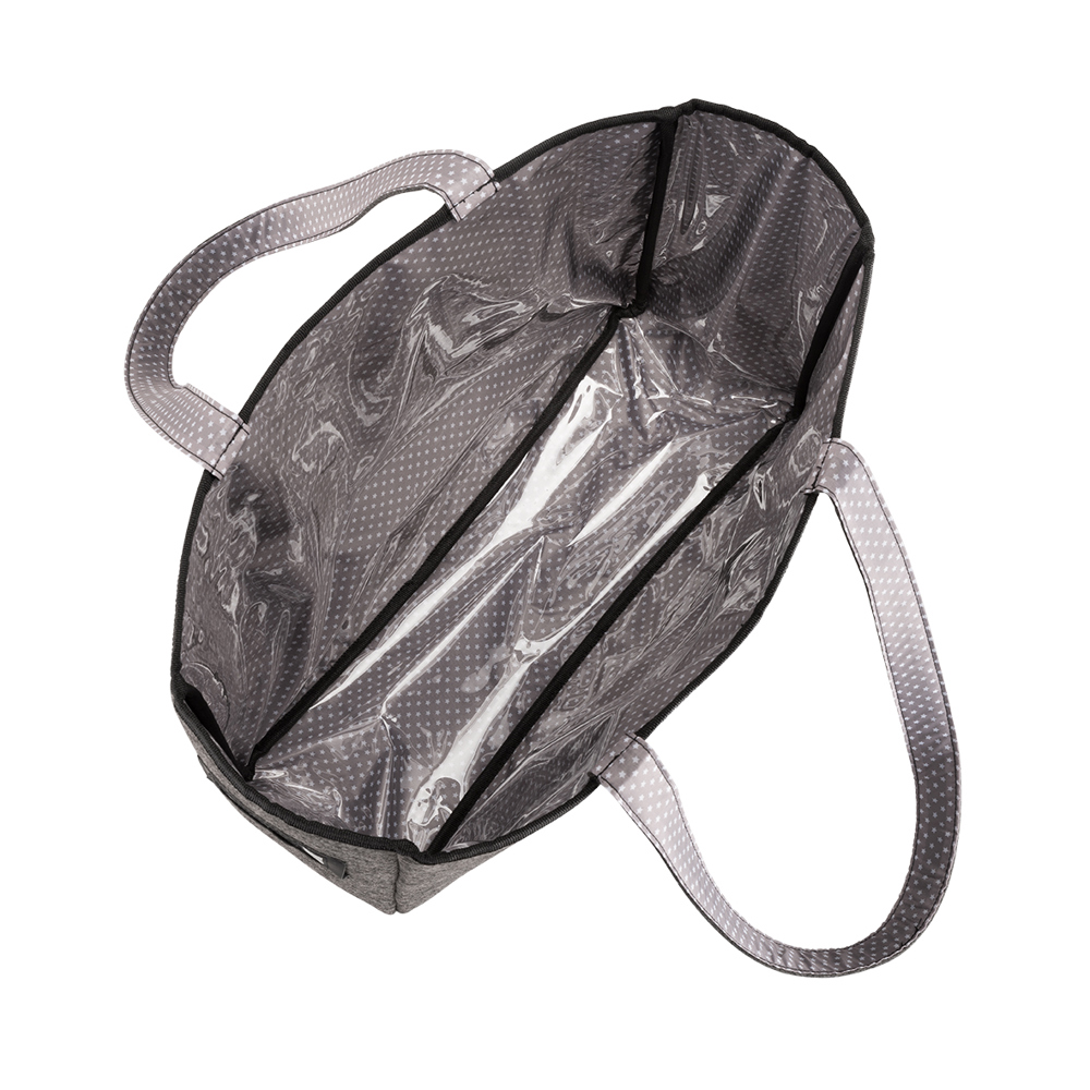 The leisure bag offers practical storage for all your activities. It features a large, open main compartment and a zipper front pocket for extra space. The interior is washable, making it easy to clean and maintain. A side name tag pocket allows for personal identification. The bottom is equipped with 4 PVC feet to keep the bag stable and clean.
