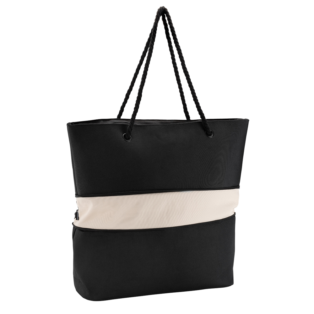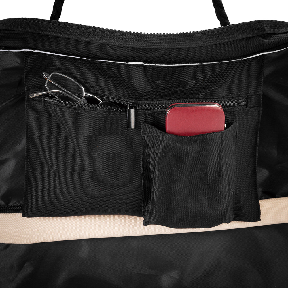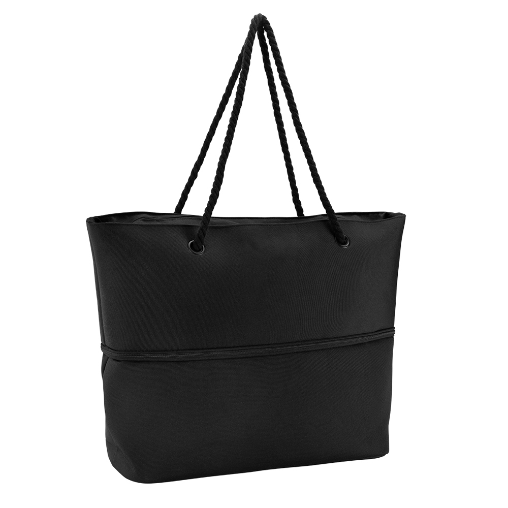 The leisure bag features a large main compartment with a zipper, an interior zipper pocket, and an interior slip pocket for added storage. It can be expanded by approximately 10 cm with a full-around zipper, providing extra space. The corded shoulder straps ensure comfortable carrying. With a capacity of 42 liters, expandable to 52 liters, this bag is perfect for leisure, travel, or everyday use. Practical, spacious, and flexible!