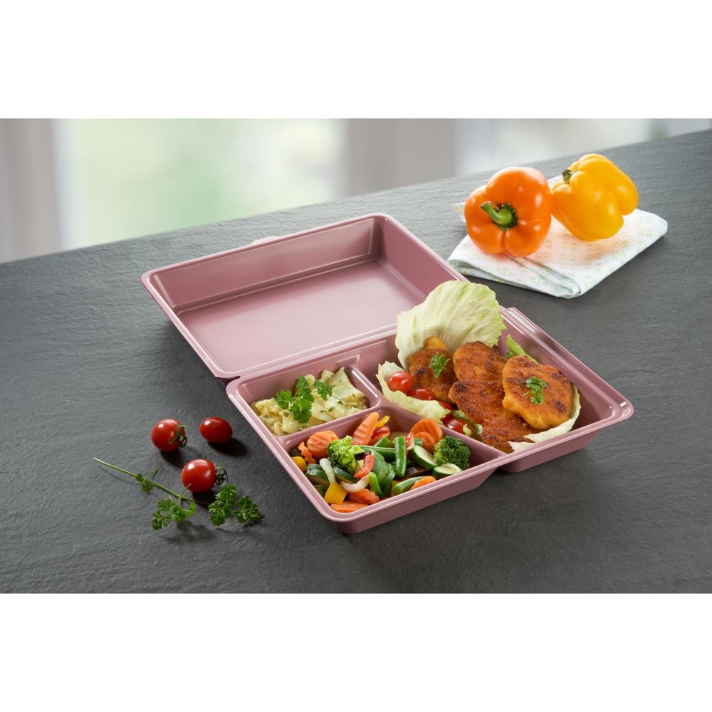 We are declaring war on disposable packaging for takeaway food. Our new meal box puts an end to unnecessary waste production. It is the sustainable alternative to disposable packaging and offers enough space for hot and cold food to be transported and eaten safely. Reusable and 100% recyclable. Suitable for the microwave, (industrial) dishwasher and refrigerator. Perfect for private use and catering.