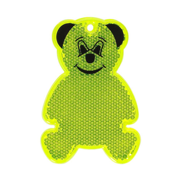 Reflector in the shape of a bear. With eyelet and cord. Contour print included (instead of the contour print, a one-colour customer print is also possible). This item is a reflective advertising tag.