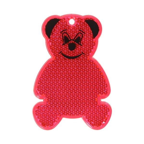 Reflector in the shape of a bear. With eyelet and cord. Contour print included (instead of the contour print, a one-colour customer print is also possible). This item is a reflective advertising tag.
