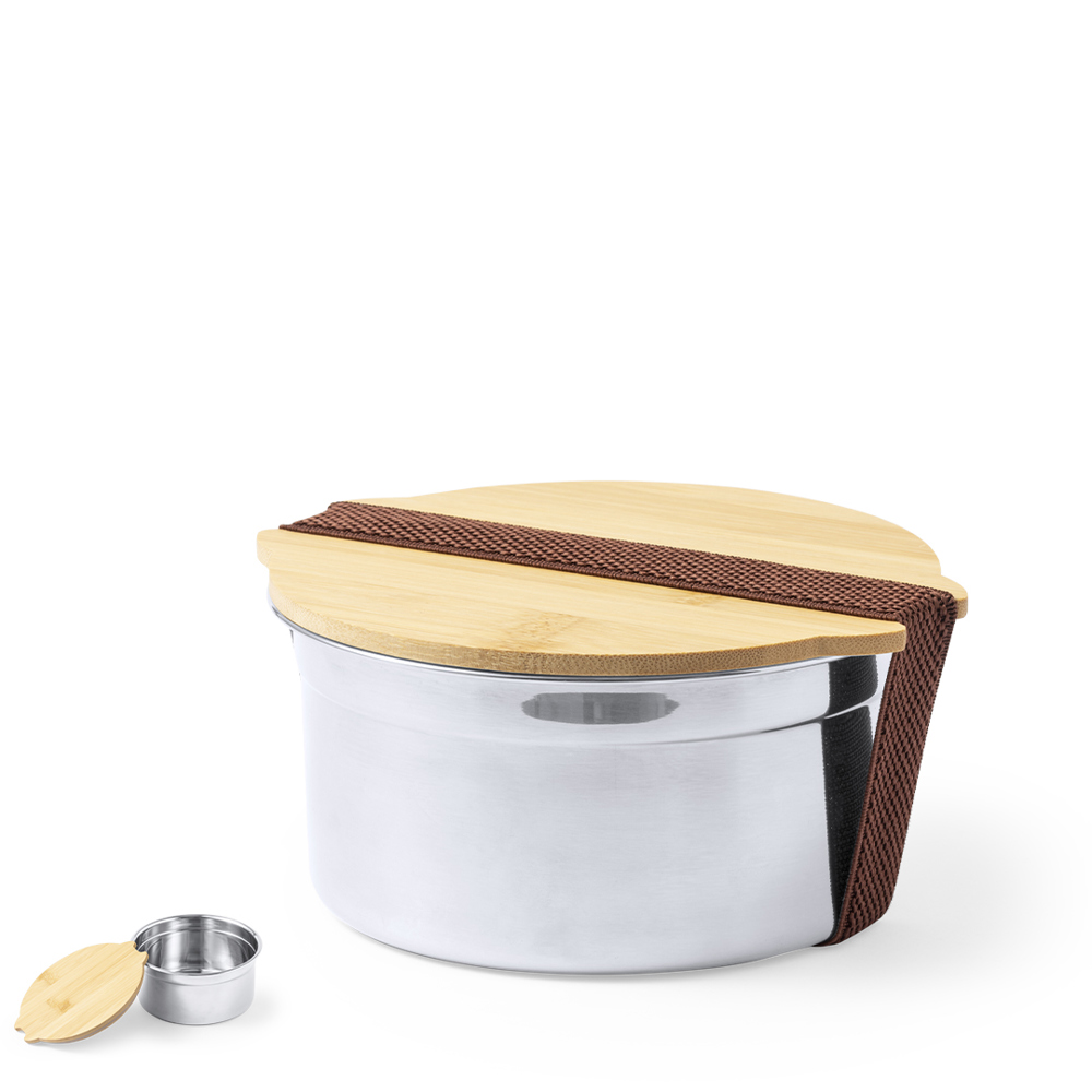 800 ml capacity lunch box, made in stainless steel. With hermetic lid in bamboo and elastic... more