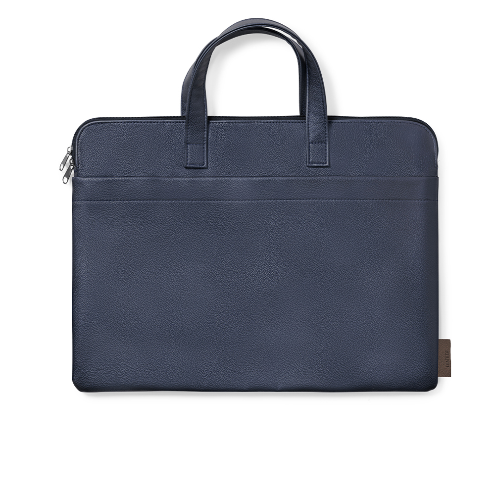 Durable, premium document holder made of recycled leather. Main compartment with zip closure and double metal puller. Padded inside, with outside pocket and matching reinforced handles. Outside label with the distinctive of recycled leather. Recycled leather recovers the fibers discarded in the manufacturing processes of leather, minimizing the waste of material, contributing to reduce the environmental impact, and preserving at the same time the original features of the leather.