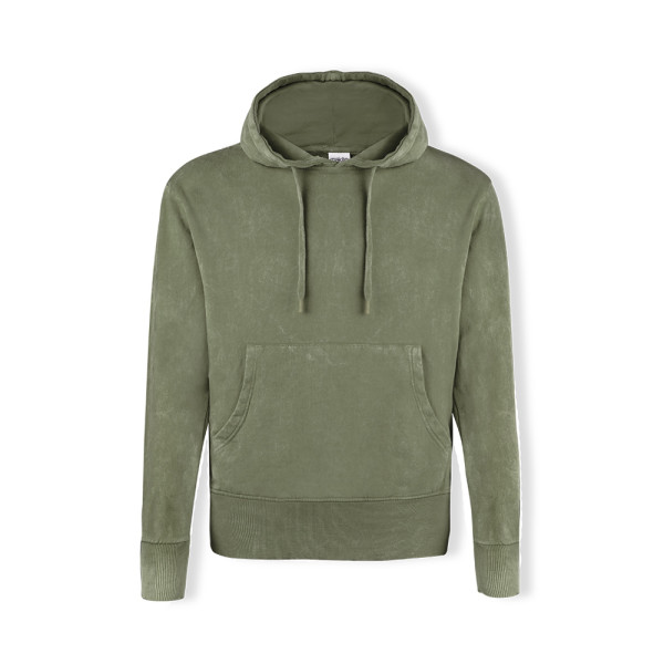 Unisex hooded sweatshirt with washed jeans effect, making each piece unique and unrepeatable.... more