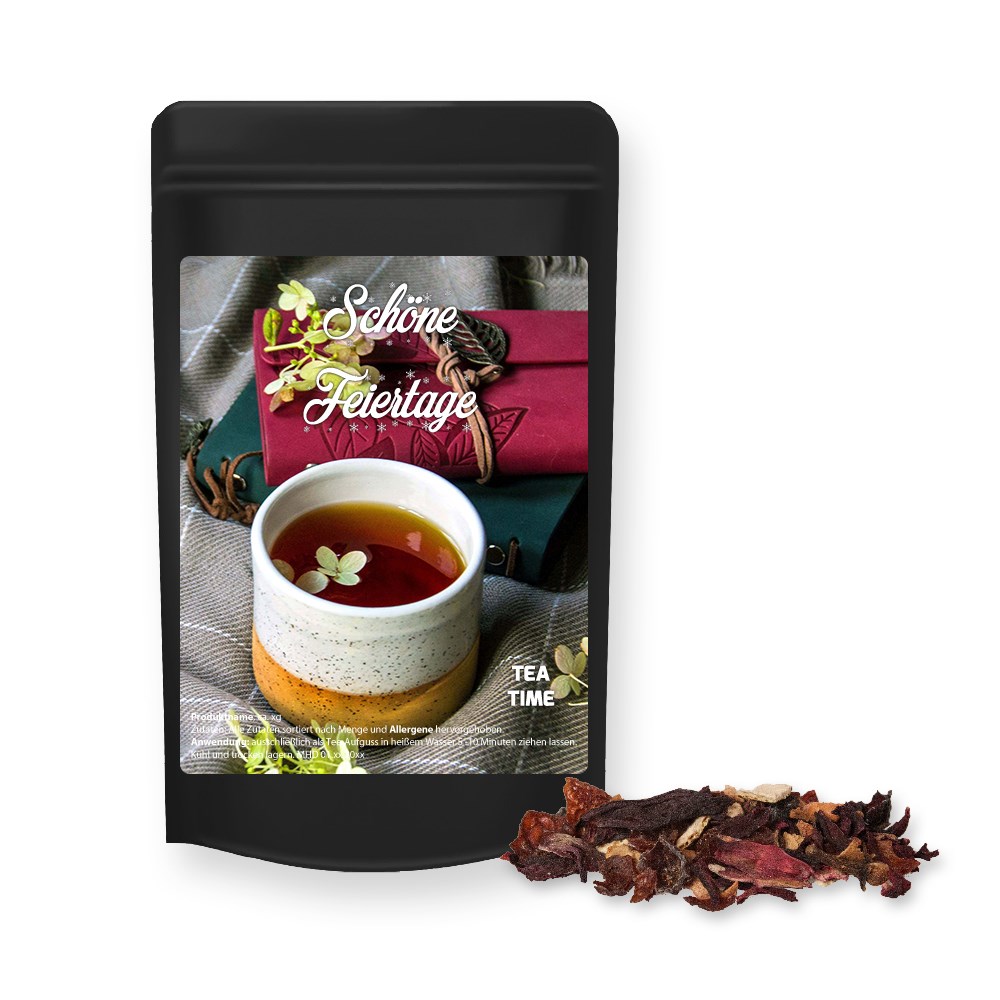Christmas fruit tea, ca. 20g, mini stand up pouch black with label