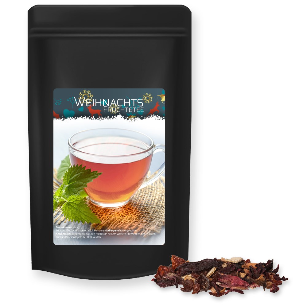 Christmas fruit tea, ca. 55g, midi stand up pouch black with label